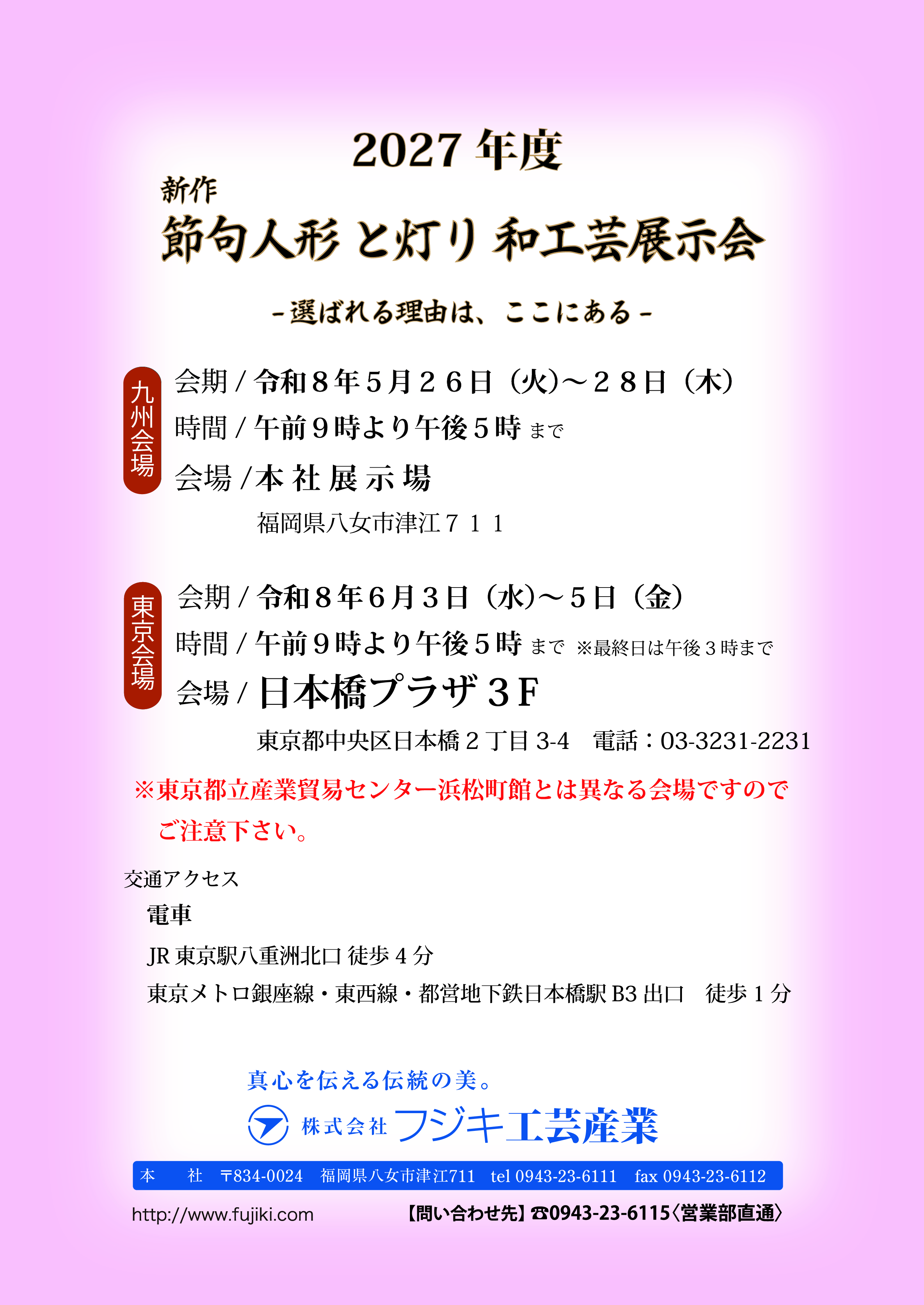 この度、2027年度の「新作節句人形と灯り 和工芸展示会」を下記の通り開催することとなりました。